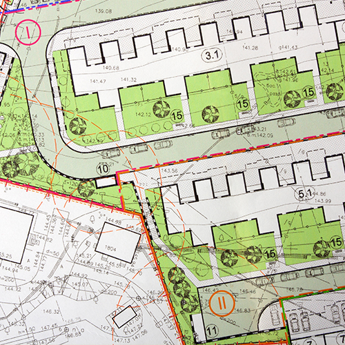 Structuration et valorisation de terrains pour un usage résidentiel, commercial ou industriel.
